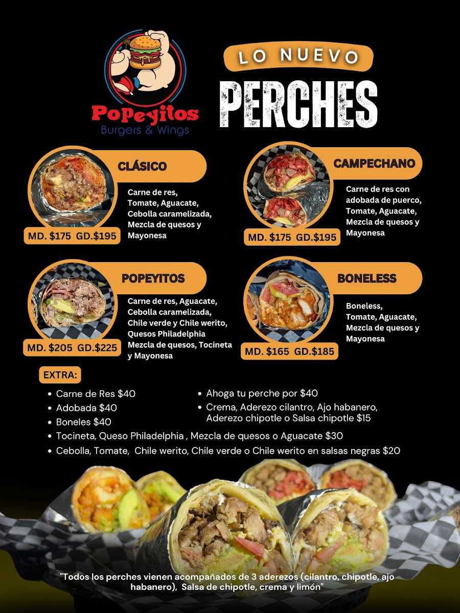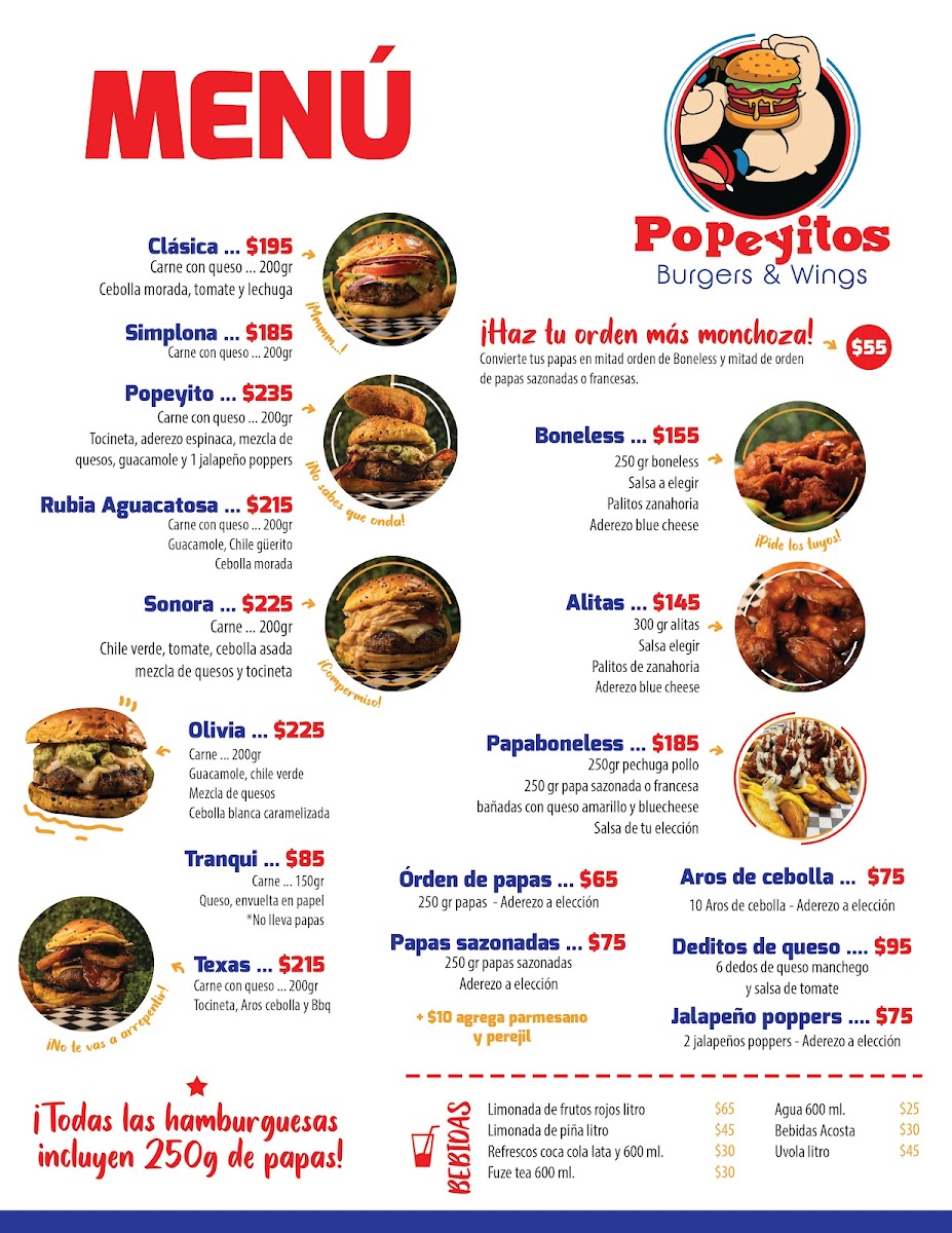 Introducing the Menu at Popeyitos Burgers & Wings Progreso